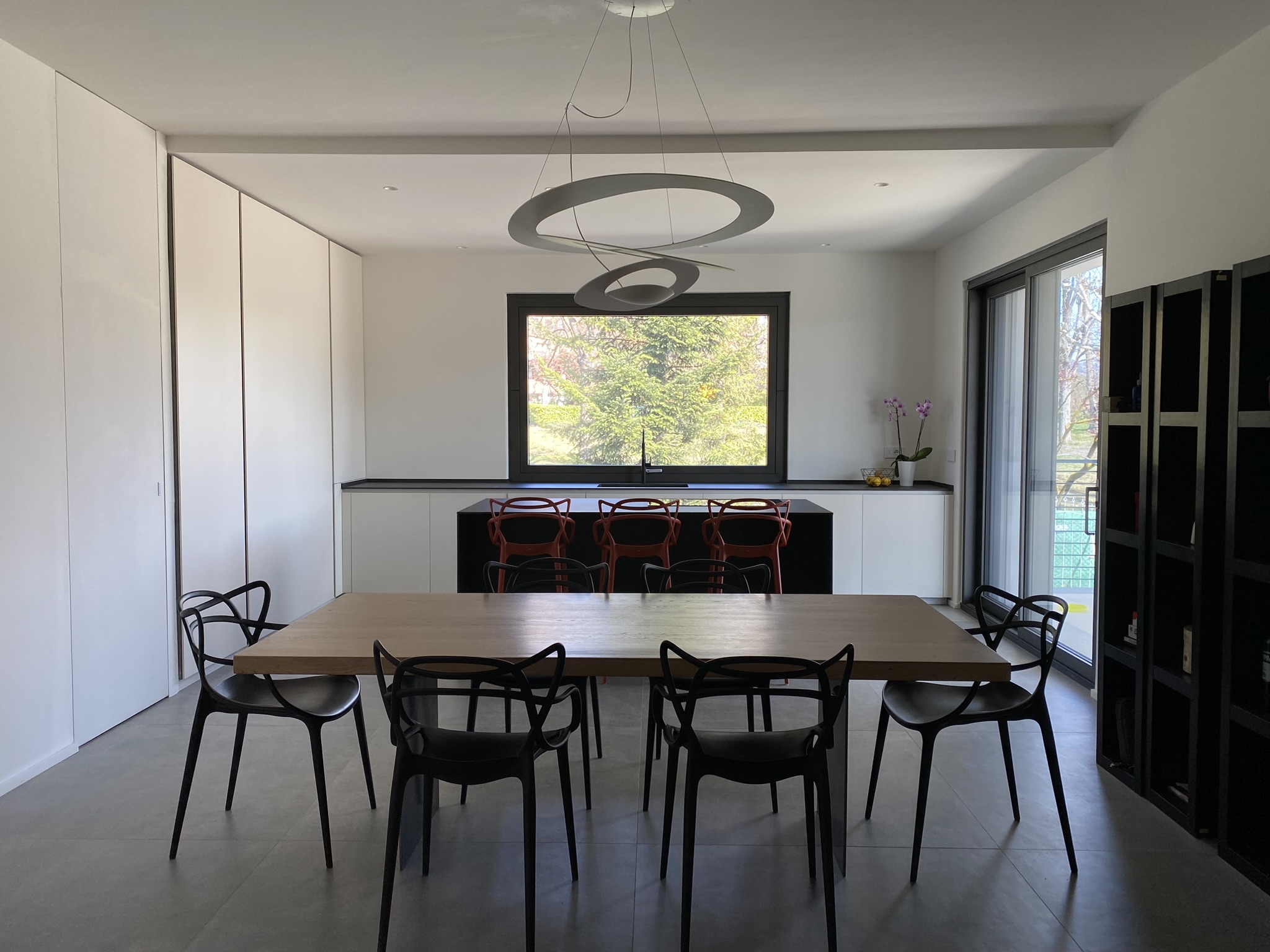 Gli arredi sono stati disegnati su misura per sfruttare al meglio tutti gli spazi dei locali a disposizione. Inoltre la scelta cromatica per le pareti valorizza la tripla esposizione dello stabile e l’illuminazione naturale.